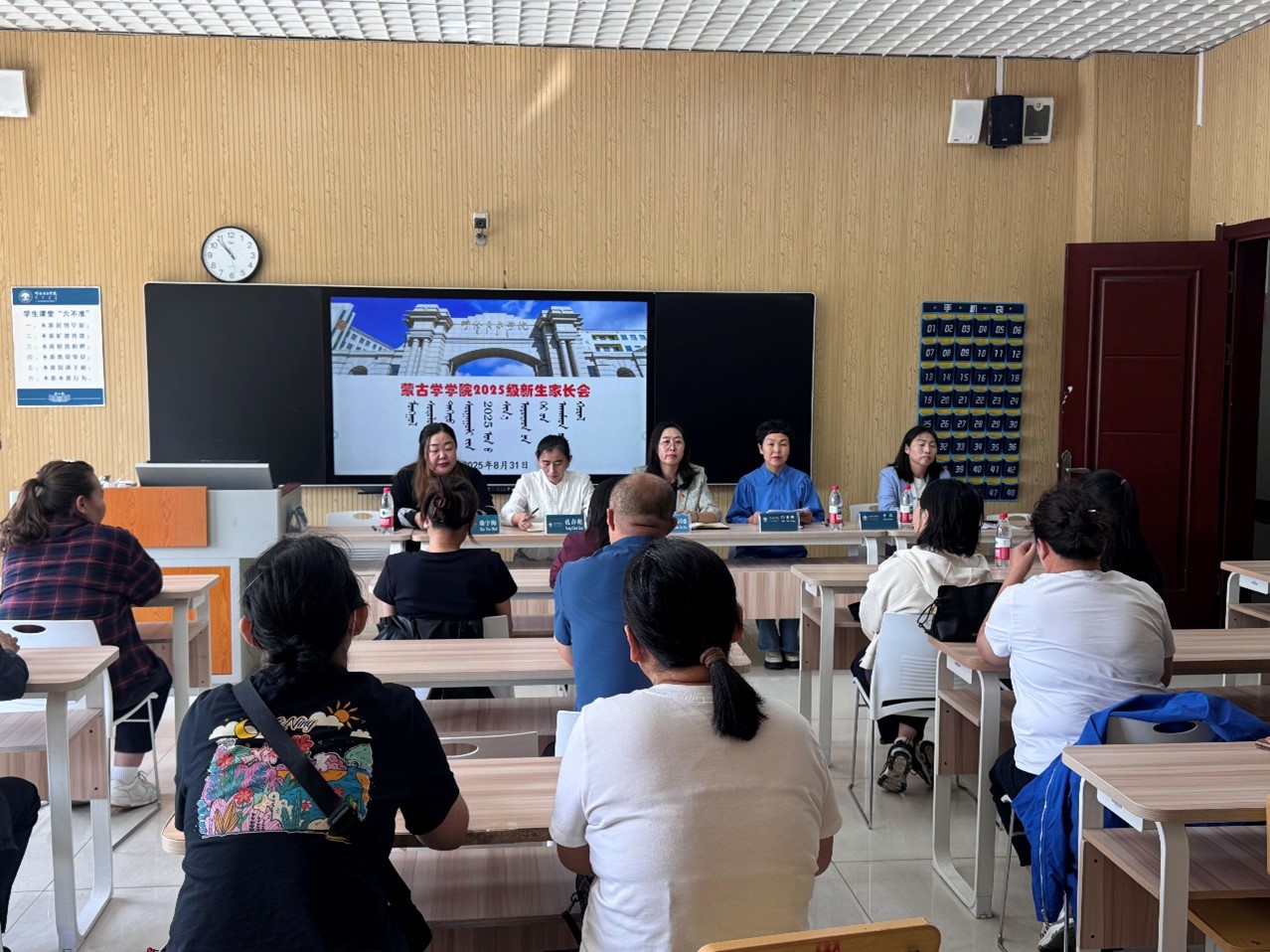 為加強家校聯動、凝聚育人合力,幫助新生家長全面了解學院育人體系與學生成長規劃,8月31日上午,蒙古學學院在崇文樓B228教室召開2025級新生家長會。學院黨委書記格根塔娜、院長白秀峰、黨委副書記孔春艷、副院長小花、新生學業導師及2025級60余名新生家長參加會議。會議由新生輔導員徐宇梅主持。