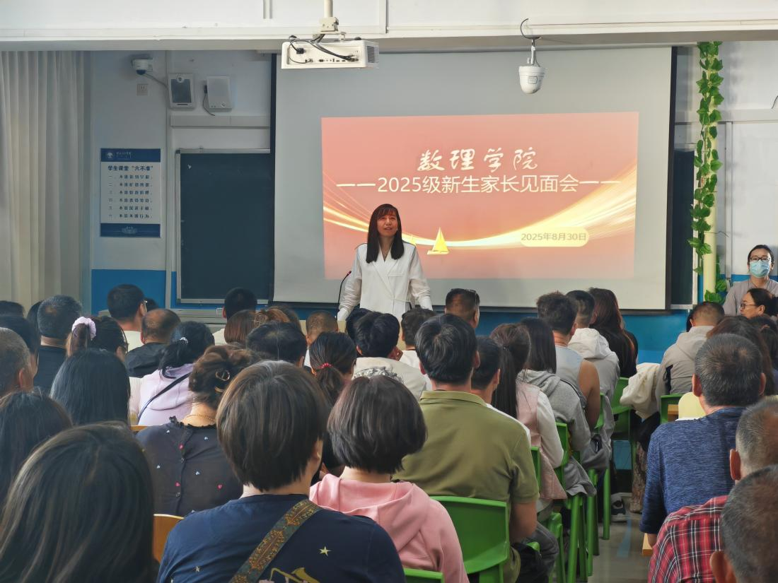 8月30日下午,數(shù)理學(xué)院在篤學(xué)樓301教室召開2025級新生家長見面會(huì)。此次見面會(huì)旨在加強(qiáng)學(xué)院與家長之間的溝通交流,共同為學(xué)生成長成才奠定良好基礎(chǔ)。學(xué)院黨委書記楊巧智、院長萬阿英、黨委副書記烏日拉、2025級新生輔導(dǎo)員以及140余名新生家長參加了會(huì)議。會(huì)議由烏日拉主持。