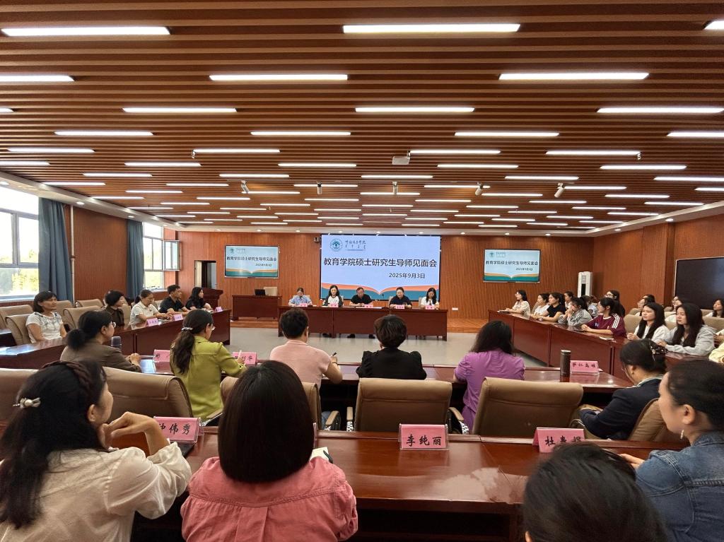為促進師生之間的交流與溝通,做好導師雙選工作,9月3日下午,教育學院在崇文樓A501會議室舉辦2025級研究生導師見面會。學院領導班子成員、校內外碩士研究生導師、研究生管理人員及2025級全體研究生共50余人參會,會議由副院長紅霞主持。