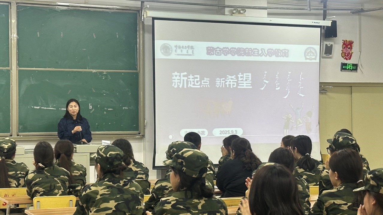 為助力新生全面了解學院、明確專業方向、規劃學業,9月3日晚,蒙古學學院院長白秀峰、副院長小花分別以“認知專業、錨定未來”“新起點 新希望”為主題,為2025級非物質文化遺產保護專業和中國少數民族語言文學專業新生進行入學教育專題講座。新生輔導員徐宇梅主持講座。
