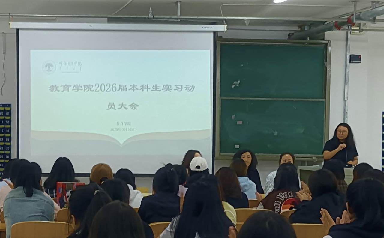 為保證2026屆畢業生實習順利開展,9月5日下午,教育學院在崇文樓B401教室召開實習動員大會。學院黨委副書記吳怡、各系主任、實習指導教師、實驗實訓中心全體教師以及2022級學前教育專業、小學教育專業、教育技術學專業和心理學專業全體學生參會。