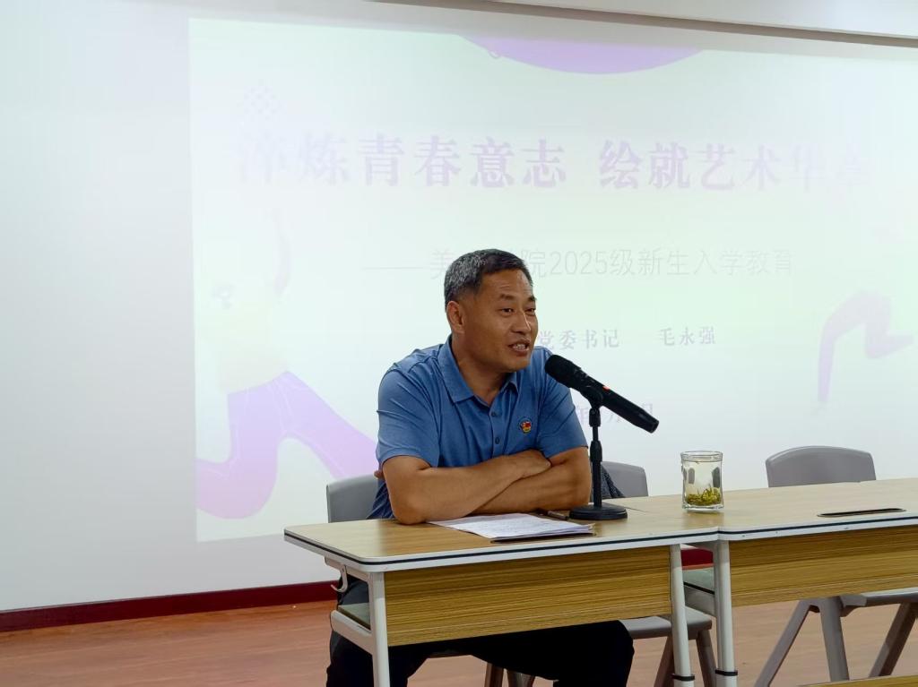 5日晚,首場(chǎng)講座由學(xué)院黨委書(shū)記毛永強(qiáng)擔(dān)任主講。毛永強(qiáng)以學(xué)院發(fā)展脈絡(luò)為切入點(diǎn),系統(tǒng)闡述了美術(shù)學(xué)院的歷史沿革、師資隊(duì)伍建設(shè)、教學(xué)平臺(tái)創(chuàng)新及人才培養(yǎng)特色,全面展現(xiàn)了學(xué)院深厚的辦學(xué)底蘊(yùn)與卓越的發(fā)展成就。結(jié)合校訓(xùn)精神的深刻內(nèi)涵,他向新生們寄予殷切囑托,勉勵(lì)同學(xué)們胸懷理想抱負(fù)、夯實(shí)專(zhuān)業(yè)根基、錘煉多元能力,在藝術(shù)探索中實(shí)現(xiàn)全面發(fā)展。