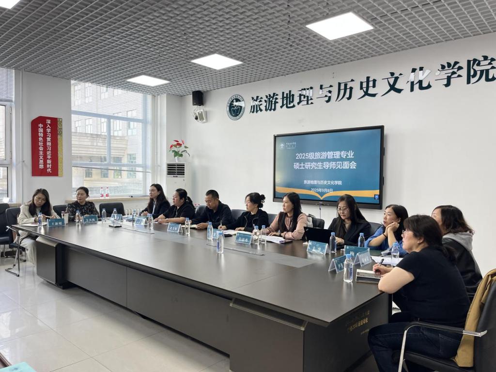 為使2025級旅游管理專業碩士研究生更好地融入學院氛圍、深入了解校內導師的學術背景與研究方向,推動師生雙向選擇工作順利開展,9月8日下午,旅游地理與歷史文化學院旅游管理專業碩士研究生導師見面會在崇文樓B321會議室召開。會議由學院院長白絮飛主持。學院領導班子成員、鄉村振興研究中心副主任吳清秀等10名導師參加了見面會,學院研究生辦公室全體教師、2025級研究生新生參加會議。