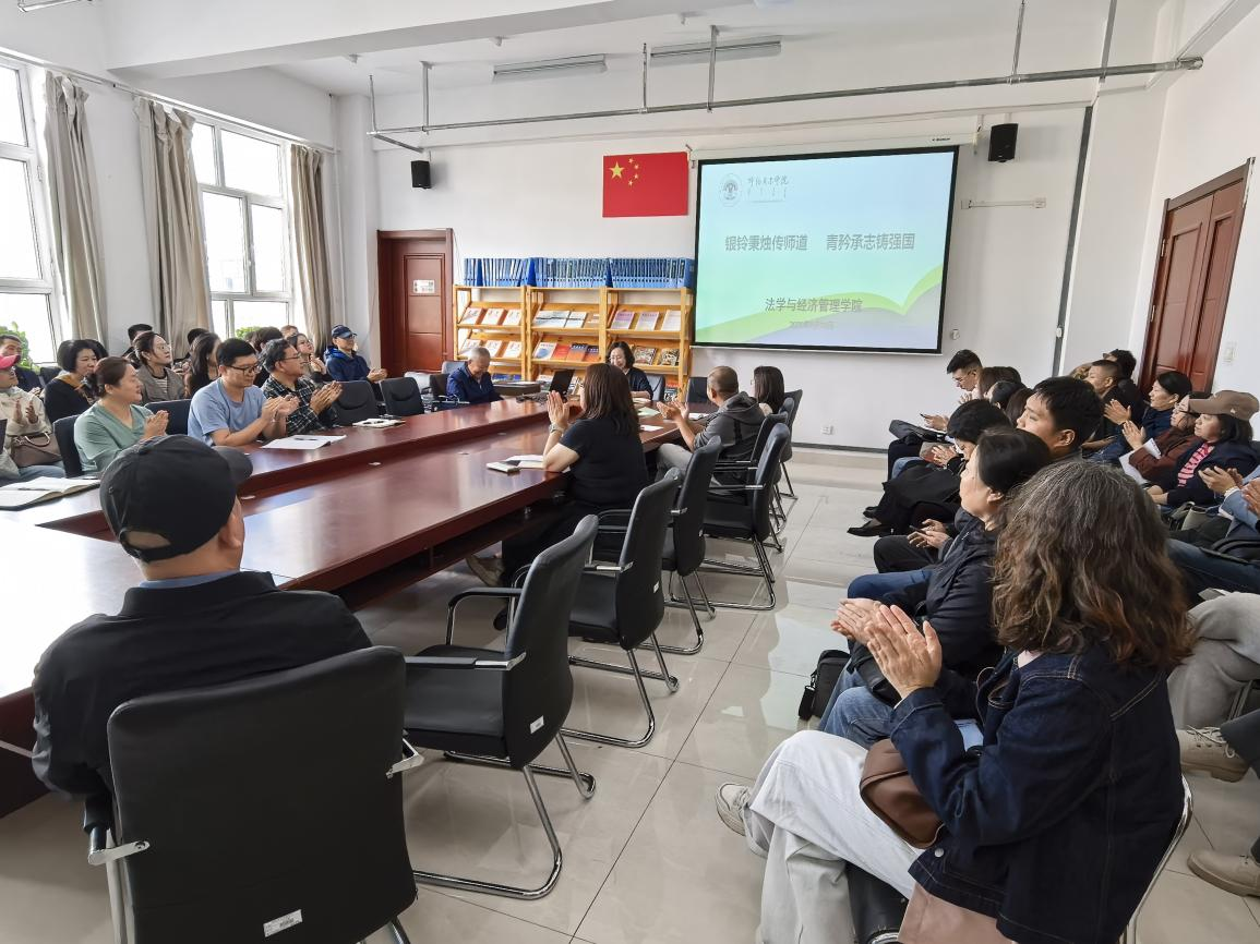 為慶祝第41個教師節,更好激勵教師能夠以教育家精神鑄魂強師,譜寫教育強國建設華章,9月10日下午,法學與經濟管理學院黨總支開展“銀齡秉燭傳師道,青衿承志鑄強國”主題黨日,邀請學校退休教師包玉山圍繞“傳承北疆文化,弘揚教育家精神,回顧戍邊教師奮進歷程”主題作專題講座,學院全體教職工參加學習。
