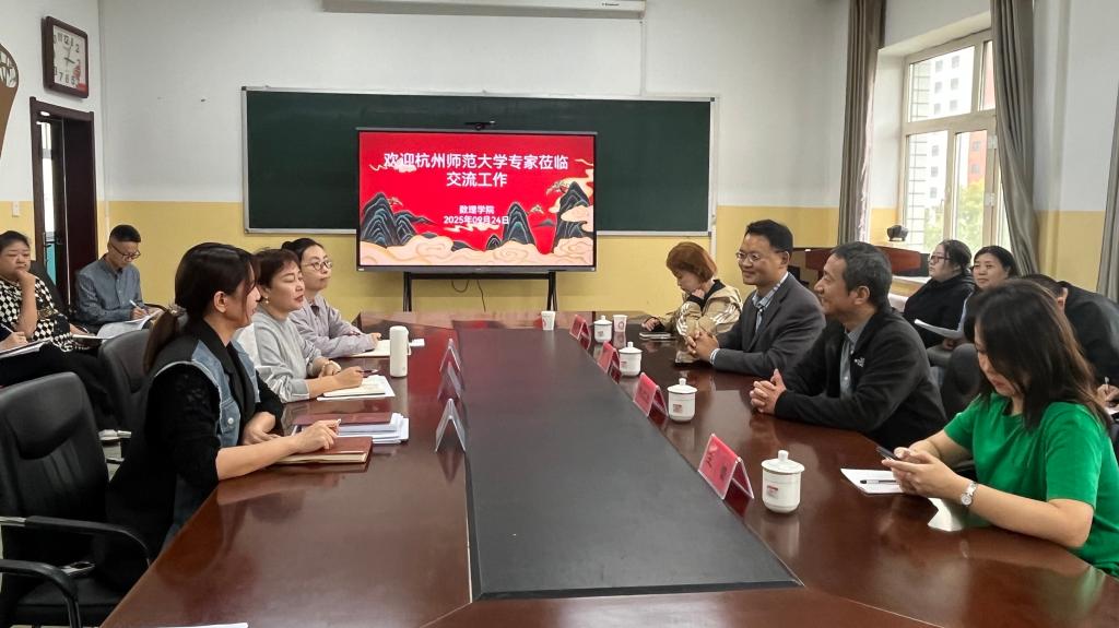 9月24日下午,杭州師范大學(xué)物理學(xué)院院長(zhǎng)侯紅生、教務(wù)科長(zhǎng)王蕾、數(shù)據(jù)與計(jì)算科學(xué)系主任曹健、教務(wù)處實(shí)踐科助理嚴(yán)馨華一行四人來(lái)訪數(shù)理學(xué)院,學(xué)院黨委書(shū)記楊巧智、副院長(zhǎng)紅蘭、黨委副書(shū)記烏日拉以及全體教職工參加了此次交流會(huì)。