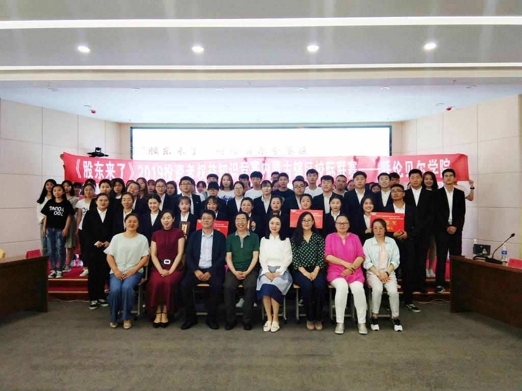 為更好地擴展投資者教育領域,構建金融人才培養新格局,填補學生知識結構空白,加強投資者知識教育,積極踐行“完善投資者教育機制,推動投資者教育納入國民教育體系”的號召,呼倫貝爾學院經濟管理學院于6月16日下午在崇文樓A201開展“股東來了”呼倫貝爾分賽區,燃燒吧,Brain金融知識競賽決賽。出席本次活動的嘉賓有恒泰證券投教部經理張潁星、恒泰證券呼倫貝爾區域副總經理于兆君、恒泰證券海拉爾營業部陳麗、經濟管理學院黨總支書記邱玉臣、國際經濟與貿易系主任豐華、教科辦主任王淑華以及楊波和馬艷艷老師。