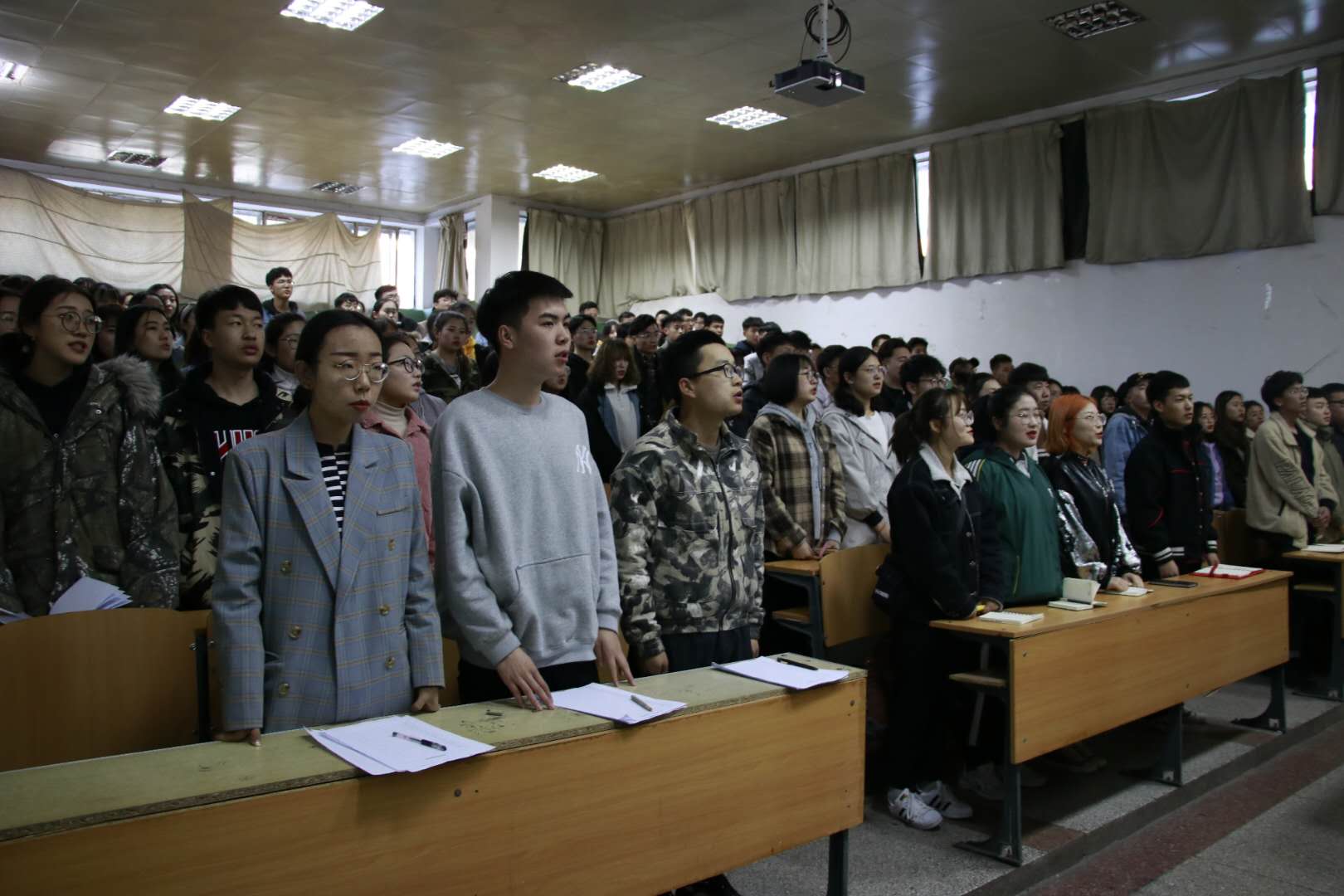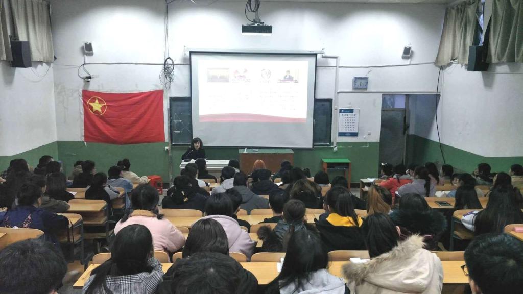 由美術學院團總支書記梅麗斯擔任主講。會議開始前,同學們起立合唱中華人民共和國國歌,在場的每位同學都莊嚴肅穆,心中升起一種無限振奮,無限光榮的情感。講話內容主要圍繞自治區第十四次團代會以來的改革創新探索;準確把握當前形勢的深刻變化;以全面過硬的團建匯聚磅礴青春力量,推動全區共青團事業實現創新發展三方面展開。開展黨性教育,為的是增強團員意識,將黨團帶進專業帶進班里。