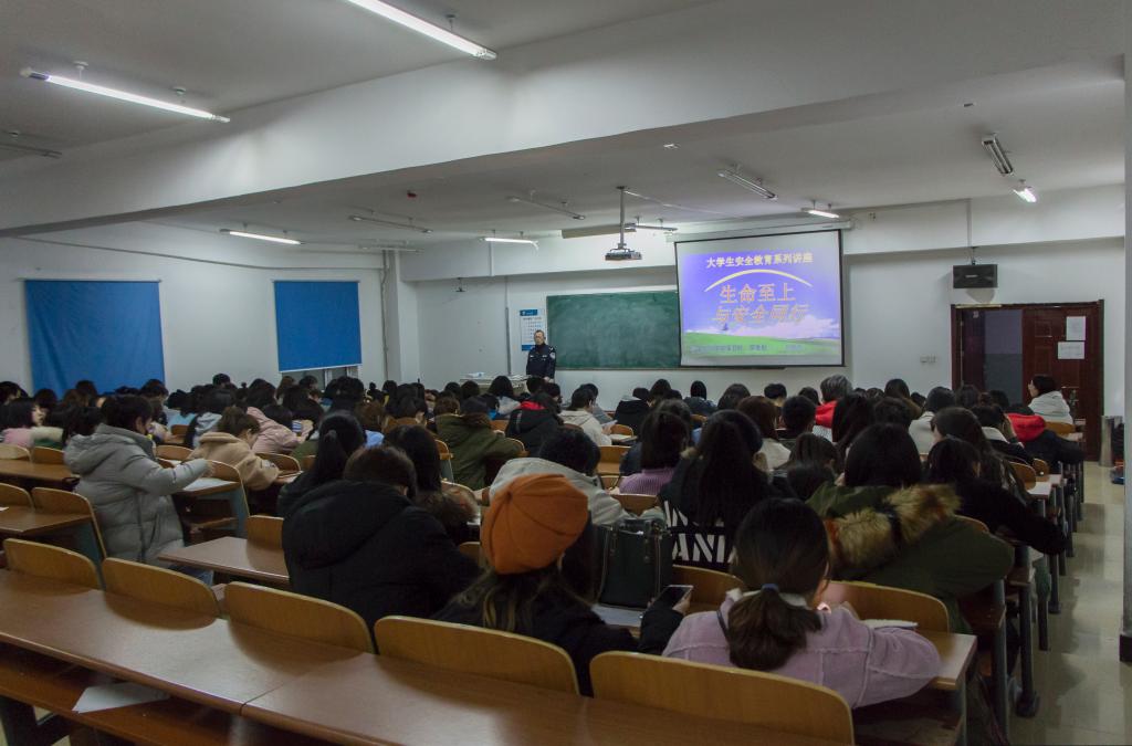 講座伊始,廖老師從各大高校的安全教育角度出發,明確的指出大學生安全知識教育的重要性,讓同學們認識到安全事故的危害性以及學習安全知識的重要性。其次廖老師從人身安全、宿舍安全、出行安全、食品安全、求職安全等多個方面為同學們列舉了一些豐富鮮活的真實案例,同時和在場的學生進行問答互動,從中有效地指導大家在遇到突發的安全事故時應如何妥善處理。最后,廖老師特別強調了關于校園網貸事故多發的現象,他特別指出校園網貸深似海,提醒同學們一定不要踏上這條不歸路,并且時刻警醒身邊的同學。
