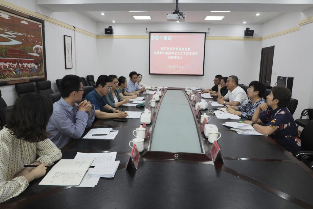 7月15日上午,在崇文樓A501會議室召開師范教育協同提質計劃首都師范大學組團呼倫貝爾學院研討會。校黨委副書記、校長李文閣,校黨委委員、副校長孟祥宏,校黨委委員、副校長敖特根以及學校相關職能部門負責人參加研討會,研討會由孟祥宏副校長主持。