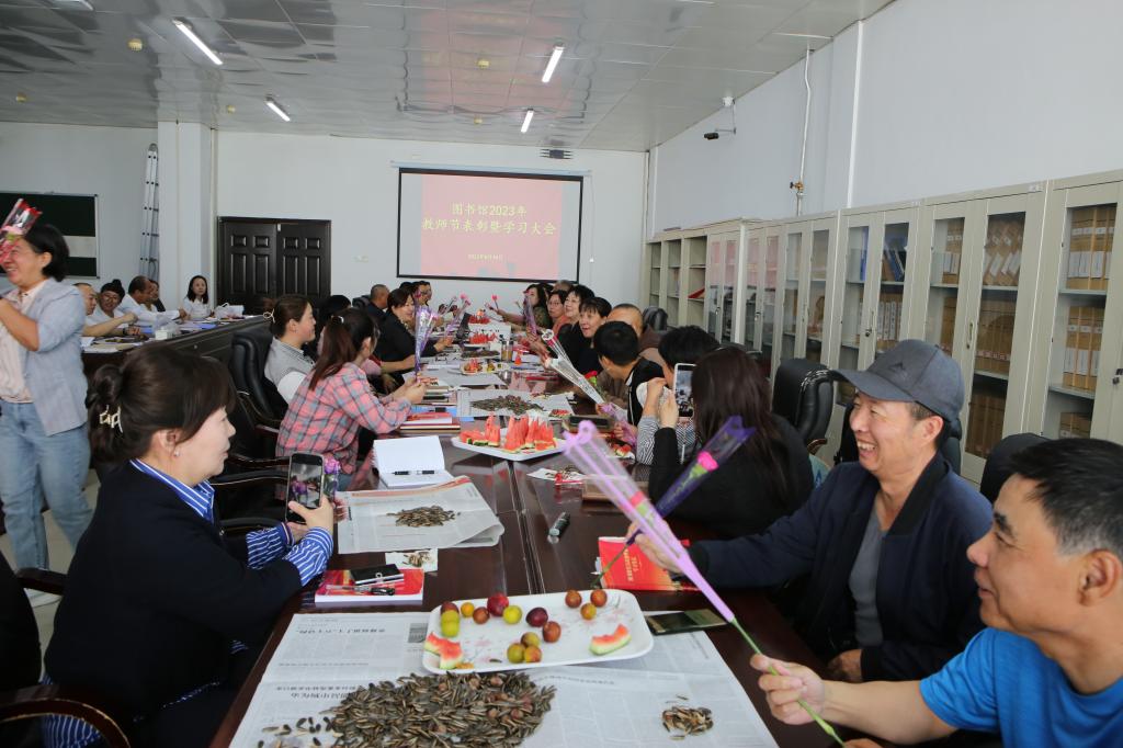 為慶祝我國第39個教師節,9月8日上午,圖書館在五樓會議室舉辦以“躬耕教壇 強國有我”為主題的2023年教師節慶?;顒?。圖書館全體館員教師參加活動,活動由圖書館工會主席謝群主持。