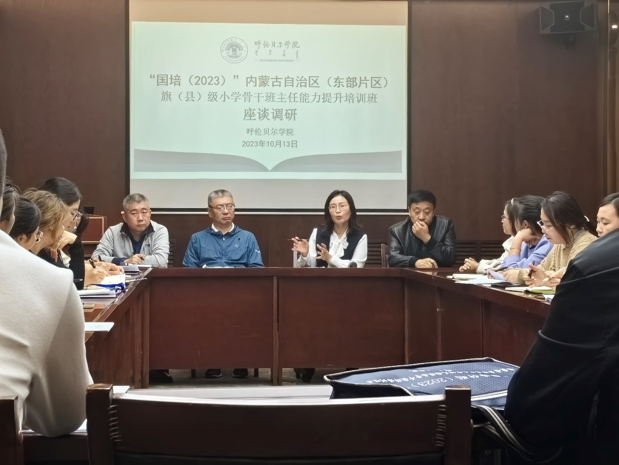 10月13日,繼續教育學院在天益華辰酒店會議室召開了“國培(2023)”內蒙古自治區(東部片區)旗(縣)級小學骨干班主任能力提升培訓班的座談調研。繼續教育學院黨總支書記李健,院長莎茹莉,副院長汪鑫、安永紅及培訓班各小組代表參加座談,座談會由汪鑫主持。