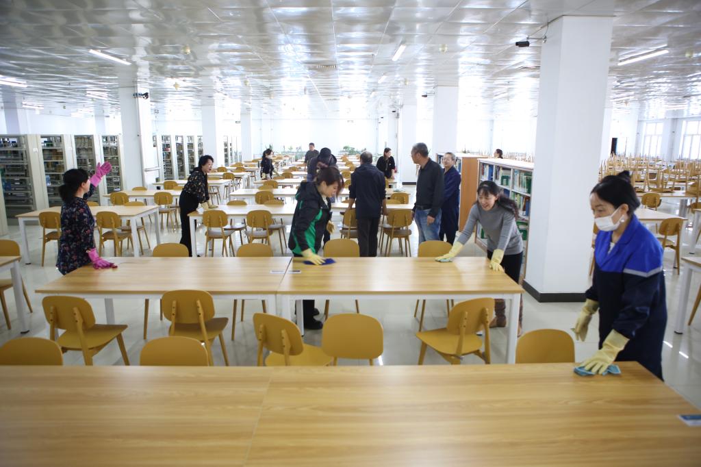 為進一步推進主題教育走深走實,迎接冬季學生入館高峰,為考研學生提供更好服務,11月3日,圖書館領導班子組織黨員和教職工集中清理和打掃了圖書館五樓自然科學閱覽區,做好該閱覽區全面開放的準備工作。