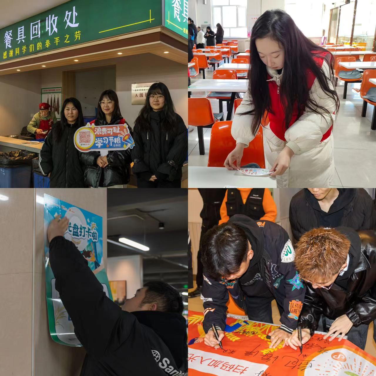 本次活動得到了后勤管理處的支持。青年志愿者協會、綠色環保志愿服務隊、蒲公英公益社團等志愿公益類社團的學生們組成校內愛糧節糧志愿服務隊,通過在學校餐飲中心、麥谷食堂張貼宣傳海報、張貼“光盤行動打卡”桌貼、進行“光盤行動”條幅簽名、“我與光盤打卡手舉牌”合影等活動形式,積極引導就餐學生愛惜糧食,杜絕浪費。活動現場,志愿者們還依托光盤打卡小程序,組織學生們參與“光盤打卡”戰隊,開展21天線上打卡,養成光盤好習慣。