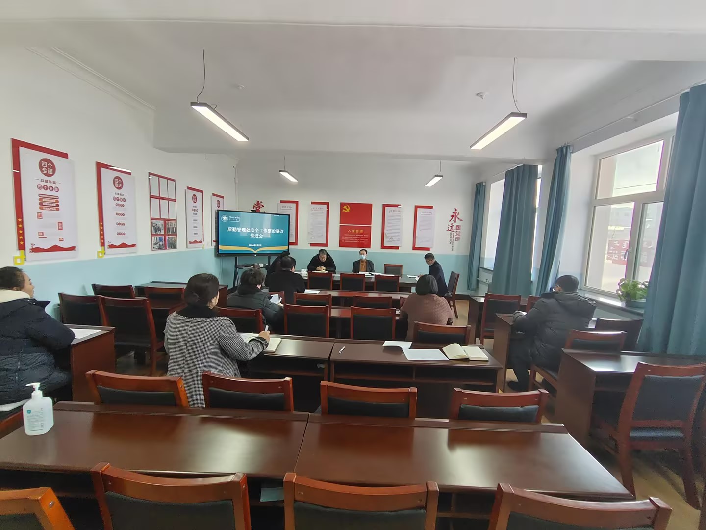 為落實學(xué)校安全工作部署,全面做好寒假及春節(jié)前后安全風(fēng)險隱患整治整改工作,2月2日上午,后勤管理處在外院樓216會議室召開后勤領(lǐng)域安全工作整治整改推進會,處領(lǐng)導(dǎo)班子成員、各科室負責(zé)人及業(yè)務(wù)骨干參會。
