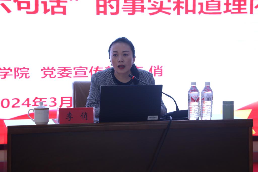 為深入開展好“感黨恩、聽黨話、跟黨走”群眾教育實踐活動,教育引導青年學生深刻領會“六句話”的事實和道理,根據呼倫貝爾市宣講工作安排,3月27日下午,呼倫貝爾市宣講團成員、我校黨委委員、宣傳部部長李俏在崇文樓A201會議室以《感黨恩、聽黨話、跟黨走——深入理解“六句話”的事實和道理內涵》為題做主題宣講,我校大學生宣講團成員、大學生記者團成員、青馬班學員和黨員先鋒站學員近150名青年學生聆聽了宣講。