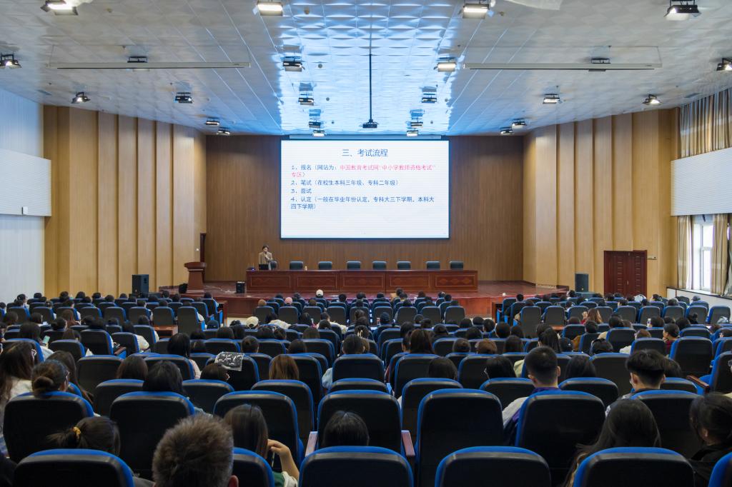 為幫助學生更好地了解教師招聘考試相關信息,4月17日,招生就業處在圖書館四樓報告廳舉辦教師招聘考試最新考情分析講座。本次講座由教育學院教師張微主講,300余名在校生參加了此次講座。