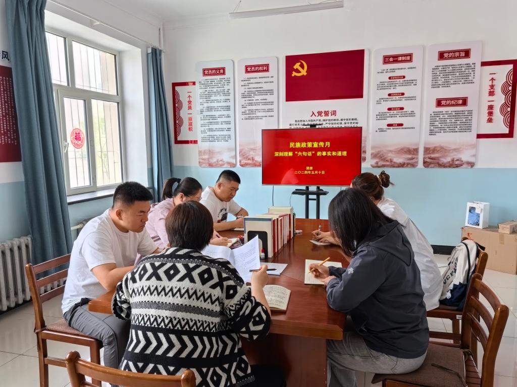 5月10日上午,團委黨支部召開民族政策宣傳月系列活動,開展深刻理解“六句話”的事實和道理專題學習。團委黨支部全體成員參加學習,黨支部書記王曉芳領學。