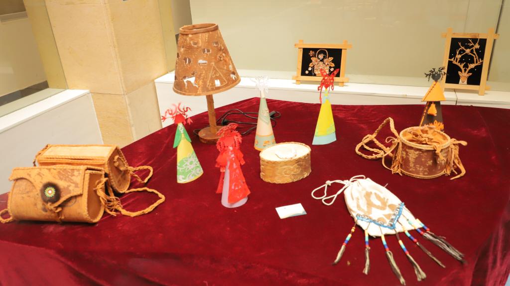 五彩斑斕的非遺作品吸引了同學(xué)們駐足觀賞。其中,傳統(tǒng)手工藝品的展示尤為引人注目,如細(xì)膩精巧的樺樹皮制品、生動傳神的剪紙作品以及富有民族特色的太陽花等,均展現(xiàn)出非遺文化的高超技藝和深厚底蘊。此外,現(xiàn)場還設(shè)有互動體驗區(qū),讓觀眾能夠親身參與到非遺文化的制作過程中,進一步加深對非遺文化的理解和認(rèn)識。