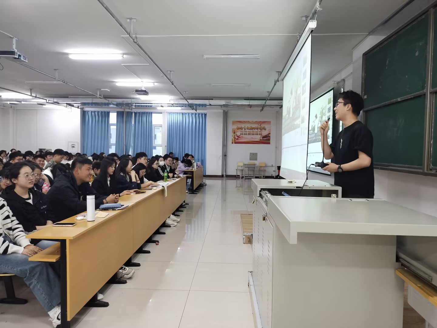 26日晚,黨委黨校組織245名發(fā)展對象開展了專題研討。研討圍繞“大學(xué)生黨員如何在鄉(xiāng)村振興中大有作為”“北疆文化建設(shè)對經(jīng)濟(jì)社會發(fā)展的促進(jìn)”等專題展開。學(xué)員們結(jié)合內(nèi)蒙古自然與人文實際情況以及專業(yè)特長,從產(chǎn)業(yè)、生態(tài)、文化、人才、基層治理等不同維度提出了鄉(xiāng)村振興的路徑設(shè)想、先進(jìn)做法、項目謀劃等。研討交流現(xiàn)場氣氛熱烈,共有24位參訓(xùn)學(xué)員發(fā)言,持續(xù)三個小時,展示了青年人活躍的思維和投身祖國建設(shè)的宏圖之志。研討交流由黨校辦公室主任師海英老師主持。