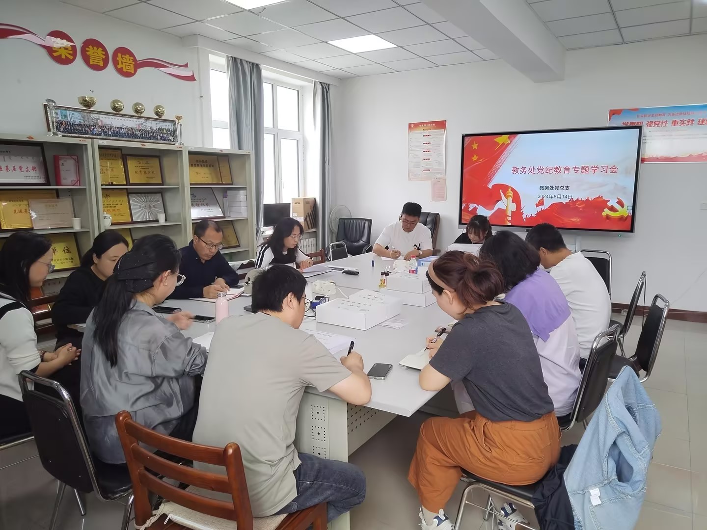6月14日上午,教務(wù)處黨總支在逸夫樓211會議室開展黨紀學(xué)習(xí)教育專題學(xué)習(xí)活動,教務(wù)處全體黨員參加了此次專題學(xué)習(xí)會。