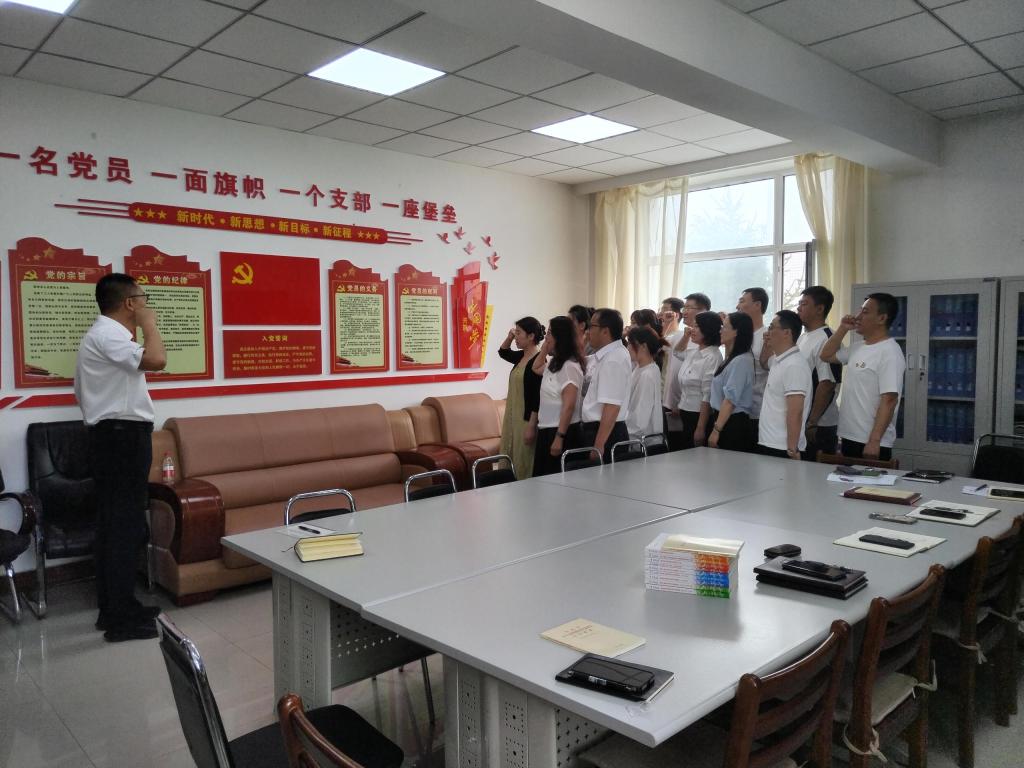 活動期間,教務處組織全體黨員重溫入黨誓詞。在領誓人王繼鋼同志的帶領下,全體黨員面對鮮紅的黨旗莊嚴宣誓。鏗鏘有力的聲音傳達出了身為共產黨員的自豪感和使命感,充分展現了全體黨員干部為黨和人民的事業奮斗終生的不變理想和追求。
