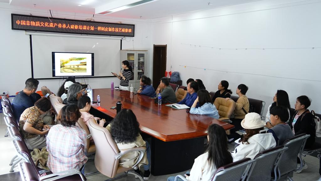 課堂上,娜敏從樺皮船以及神話與史詩等方面分享了個人研究成果,為學員帶來了一場生動精彩的課堂。隨后,學員們參觀了博物館的歷史廳、索倫廳、民俗廳、自然廳等地。通過參觀博物館內豐富多樣的珍貴文物、歷史圖片與民族服飾,學員們深刻了解了鄂溫克族豐富多彩的民族文化、生活背景以及生活狀態,感受壯闊宏大的鄂溫克民族歷史、絢麗多彩的鄂溫克民族風情風貌,同時也能深切體會鄂溫克族對“樺樹皮制作技藝”的傳承與保護。