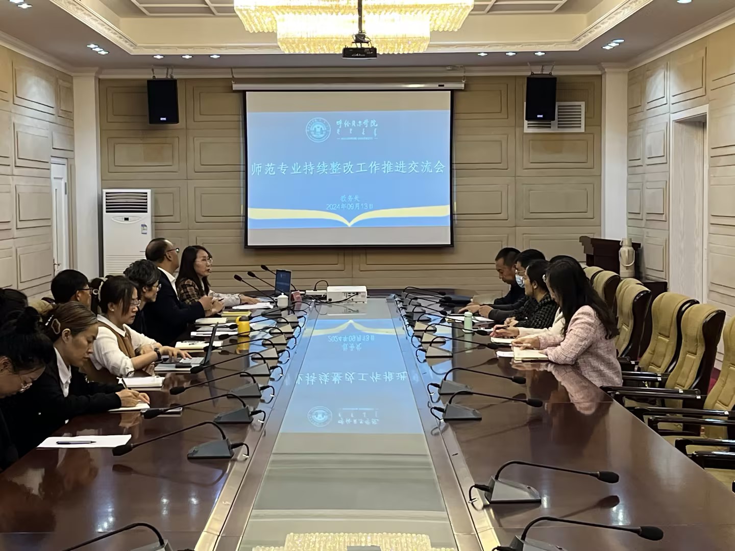 會議聽取了數理學院、教育學院、文學院、旅游地理與歷史文化學院、馬克思主義學院、美術學院、體育學院(冰雪運動學院)院領導和師范專業認證負責人的師范專業持續改進報告。各二級學院結合認證報告及專家反饋問題從持續改進的工作進展、工作思路、工作舉措、工作反思、下一步工作計劃等方面作了詳細匯報。