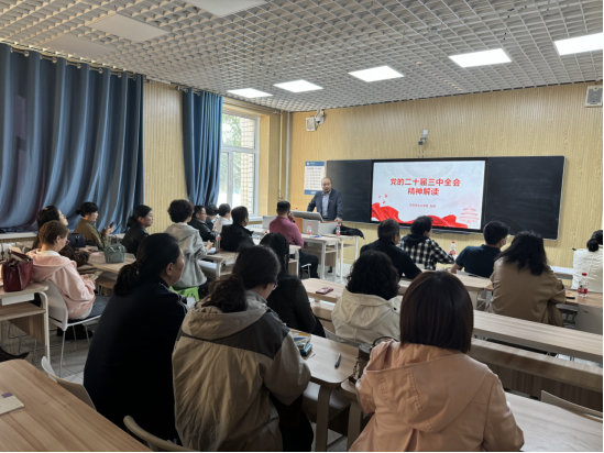 為深入學習貫徹黨的二十屆三中全會精神,深刻把握進一步全面深化改革、推進中國式現代化的重要內涵,把思想和行動統一到全會精神上來,9月25日,黨委統戰部邀請馬克思主義學院張舒老師作了題為《黨的二十屆三中全會精神解讀》專題講座。學校民主黨派、無黨派人士、黨外知識分子和歸國留學人員代表等30余人參加了學習。