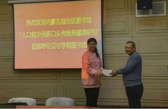 9月27日下午,內蒙古自治區圖書館“人口較少民族口頭傳統典藏計劃”調研組來我校圖書館,在圖書館三樓報告廳與圖書館相關人員開展了調研座談會。