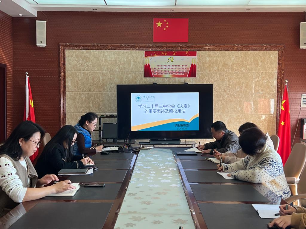 為了深入學習貫徹黨的二十屆三中全會精神,10月28日,學報編輯部在403會議室組織學習黨的二十屆三中全會《中共中央關于進一步全面深化改革、推進中國式現代化的決定》(以下簡稱“《決定》”)的重要表述及編校用法。
