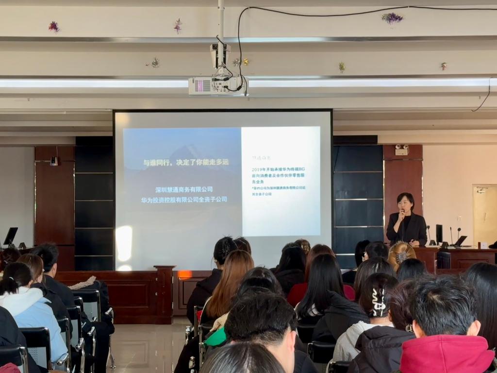 宣講會上,企業(yè)負(fù)責(zé)人通過ppt對公司背景、業(yè)務(wù)、文化、產(chǎn)品、崗位及員工待遇等方面進(jìn)行了全面細(xì)致的介紹。隨后,我校優(yōu)秀畢業(yè)生、內(nèi)蒙古終端呼倫貝爾區(qū)域體驗(yàn)店代表分享了自己的就職經(jīng)驗(yàn)。學(xué)長鼓勵(lì)同學(xué)們樹立正確的價(jià)值導(dǎo)向,做好職業(yè)規(guī)劃,確定事業(yè)方向,積極主動求職。問答環(huán)節(jié)中對同學(xué)們提出的網(wǎng)申面試、薪資待遇、職業(yè)前景等相關(guān)的問題進(jìn)行了說明,為大學(xué)生入職前后會遇到的主要問題作了耐心回復(fù),并誠摯歡迎同學(xué)們應(yīng)聘深圳慧通商務(wù)有限公司。