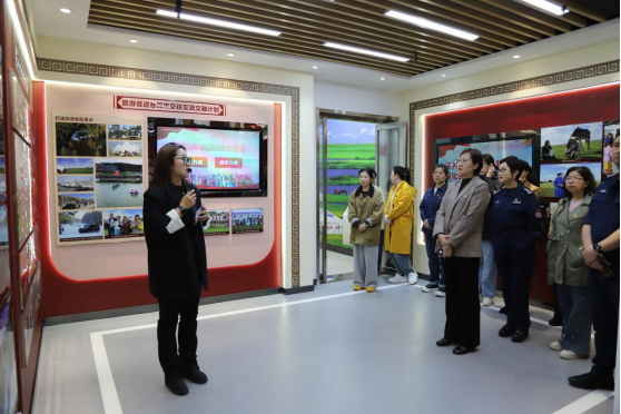 該展廳以“全面加強黨對民族工作的領導”“推進中華民族共有精神家園建設”“推動各民族共同走向現代化”“促進交往交流交融”“防范民族領域風險隱患”五大單元為脈絡,巧妙融合現代科技與傳統民族元素,綜合運用交互一體平臺、數字化展示、體感互動體驗等多元手段,通過豐富多樣的圖文資料、生動翔實的實物展品與多媒體展示,全方位、多角度展現了鄂溫克族自治旗新時代黨的民族工作取得的豐碩成果。參觀過程中,黨員們跟隨專業講解員的解說,深刻感悟各民族休戚與共的歷史淵源,見證新時代民族團結進步事業的生動實踐。展廳內的每一處細節都在訴說著“中華民族共同體意識是國家統一之基、民族團結之本、精神力量之魂”的深刻內涵。
