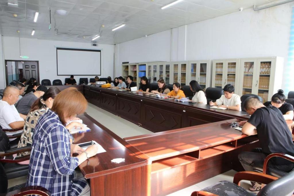 圖書館館長烏蘭托婭對近期重點工作進行布置,著重強調此次審核評估的重要性,并對新生入館、安全管理、加強業務學習及增強服務意識等方面進行了重點強調。隨后,副館長鄭翠梅領學了《新一輪本科教育教學審核評估應知應會手冊》(教師版)、普通高等學校本科教育教學審核評估(2021-2025)精要導讀等內容,進行了詳細解讀,并對涉及圖書館方面的工作進行具體的分解和安排,確保任務落地、責任到人。
