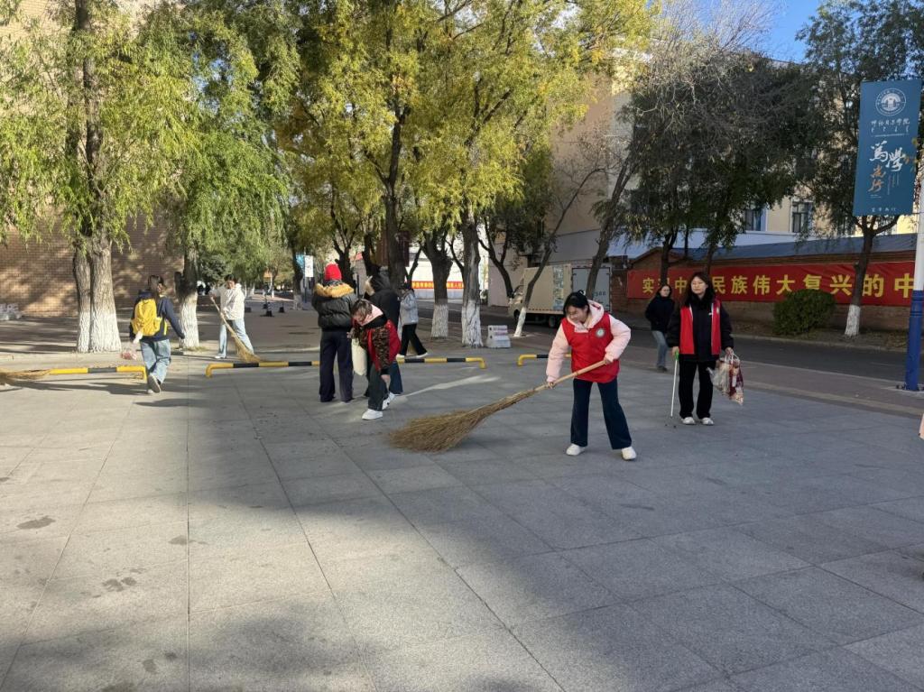 活動啟動后,各二級學(xué)院迅速掀起衛(wèi)生掃除熱潮。老師們率先垂范,深入班級、宿舍與學(xué)生一同勞動,有的手持掃帚清掃地面落葉,有的彎腰撿拾綠化帶中的垃圾,有的協(xié)助整理宿舍內(nèi)務(wù),用實際行動為學(xué)生樹立榜樣;學(xué)生們更是熱情高漲,以班級、宿舍為單位,分工協(xié)作、相互配合,從教學(xué)樓的課桌抽屜、黑板縫隙,到宿舍樓的走廊拐角、樓梯扶手,再到校園角落的雜草枯枝、衛(wèi)生死角,大家不放過任何一個細(xì)節(jié)。一時間,校園內(nèi)隨處可見師生們忙碌的身影,掃地聲、擦拭聲、搬運雜物的聲音交織在一起,形成了一幅“全員參與、共建美麗校園”的生動畫面。