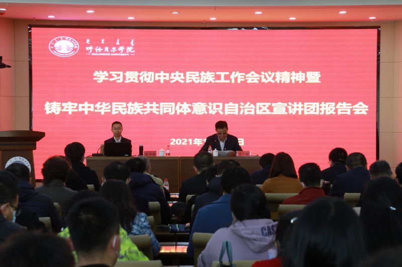10月12日上午,學習貫徹中央民族工作會議精神暨鑄牢中華民族共同體意識自治區宣講團呼倫貝爾首場報告會在我校舉行。內蒙古黨校民族理論教研部楊興猛教授作專題宣講報告。自治區黨委黨史學習教育第三巡回指導組組長劉劍夕等成員、呼倫貝爾市委宣傳部領導、呼倫貝爾學院領導班子成員及師生代表近200人聆聽了報告會。宣講報告會由校黨委書記王廣利主持。報告會上,楊興猛教授以《學習貫徹中央民族工作會議精神 進一步鑄牢中華民族...