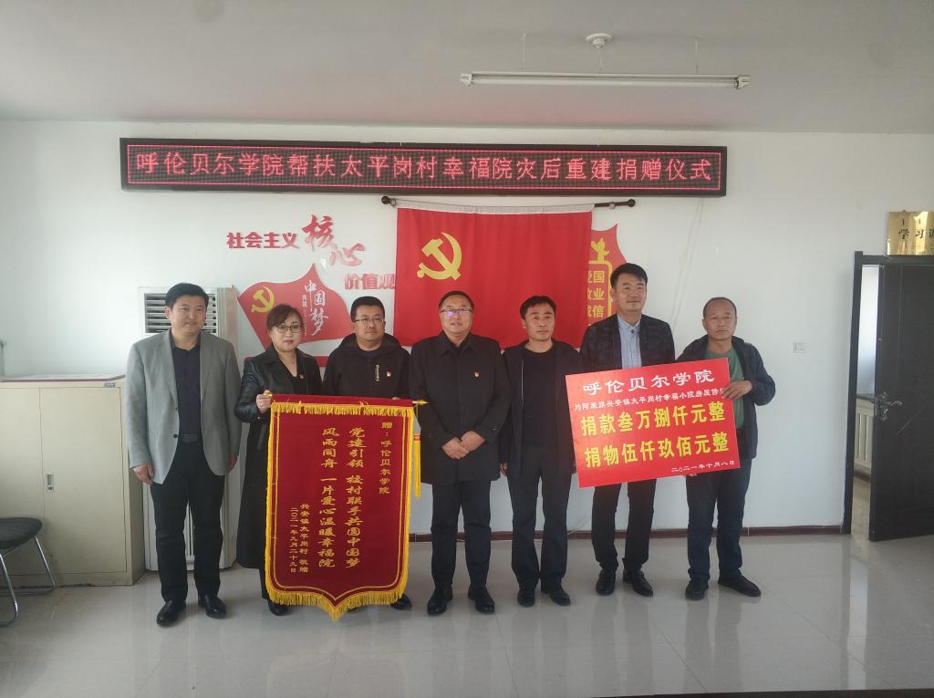 10月9日,校黨委副書記張國棟一行深入到阿榮旗興安鎮太平崗村幸福小院為五戶失火重建住戶送去了38000元的資金和價值5900元的物資,并鼓勵他們在各級黨委政府的幫助下,要堅定信心,樂觀的面對生活,盡快走出困境,過上幸福生活。4月22日,一場突如其來的火災,使興安鎮太平崗村幸福小院5家住戶遭受了巨大的財產損失,給本不富裕的家庭帶來沉重負擔。得知這一情況后,我校組織全校干部職工和在校學生積極捐款,主動奉獻愛心,為...