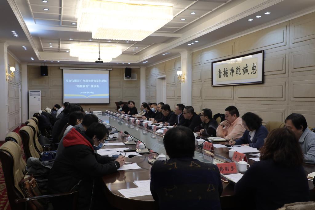 2月24日下午,學校與市文化旅游廣電局在圖書館三樓報告廳召開“地校融合”座談會,市文化旅游廣電局黨組書記、局長臧著強,副局長包海明、張本磊,呼倫貝爾市博物院院長白勁松以及市文化旅游廣電局各相關科室負責人參加會議,學校黨委書記王廣利,黨委委員、副校長孟祥宏、田振江,黨政辦、發展規劃處、教務處等相關部門、9個學院負責人及部分教師參加座談。孟祥宏副校長主持座談會。王廣利書記首先介紹了學校的基本情況,并對...