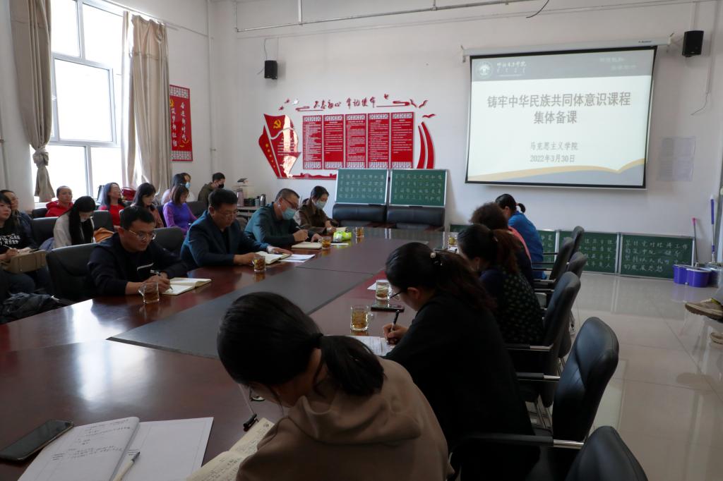 ?3月30日下午,馬克思主義學院在崇文樓B123會議室召開鑄牢中華民族共同體意識教研室集體備課會。校黨委書記王廣利,黨政辦公室主任吳宏偉、黨委宣傳部副部長劉金紅,教務處副處長姜作杰,馬克思主義學院班子成員及全體教師參會。馬克思主義學院副院長吳秀芳主持會議。會上,馬克思主義學院教研室主任海龍老師介紹了課程開設的基本情況。他根據內蒙古自治區2022年3月頒發的《鑄牢中華民族共同體意識教學大綱(修訂版)》,闡明...