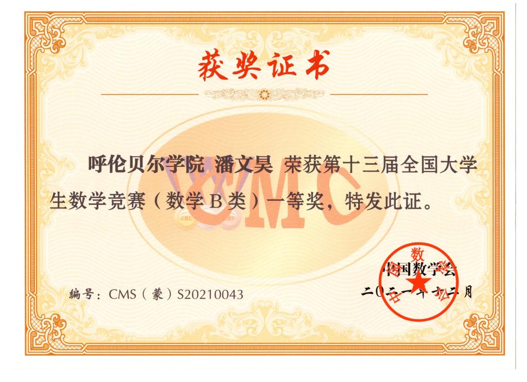 我校學子在第十三屆全國大學生數學競賽中再創佳績