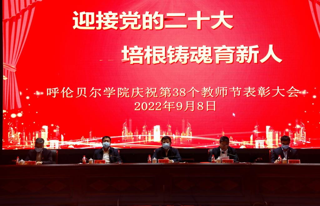 ?9月8日下午,我校在藝術樓演播廳舉行了“迎接黨的二十大,培根鑄魂育新人”慶祝第38個教師節暨表彰大會。校黨委書記王廣利,黨委副書記、校長李文閣,黨委委員、紀委書記、監察專員岳勇,黨委委員、副校長敖特根,黨委委員、副校長田振江和受表彰的先進個人、優秀團隊以及師生代表近300人參加了大會。大會對31個教育先進集體和49名先進個人進行了表彰,會議由黨委副書記、校長李文閣主持。表彰大會在莊嚴的國歌聲中拉開帷幕。...