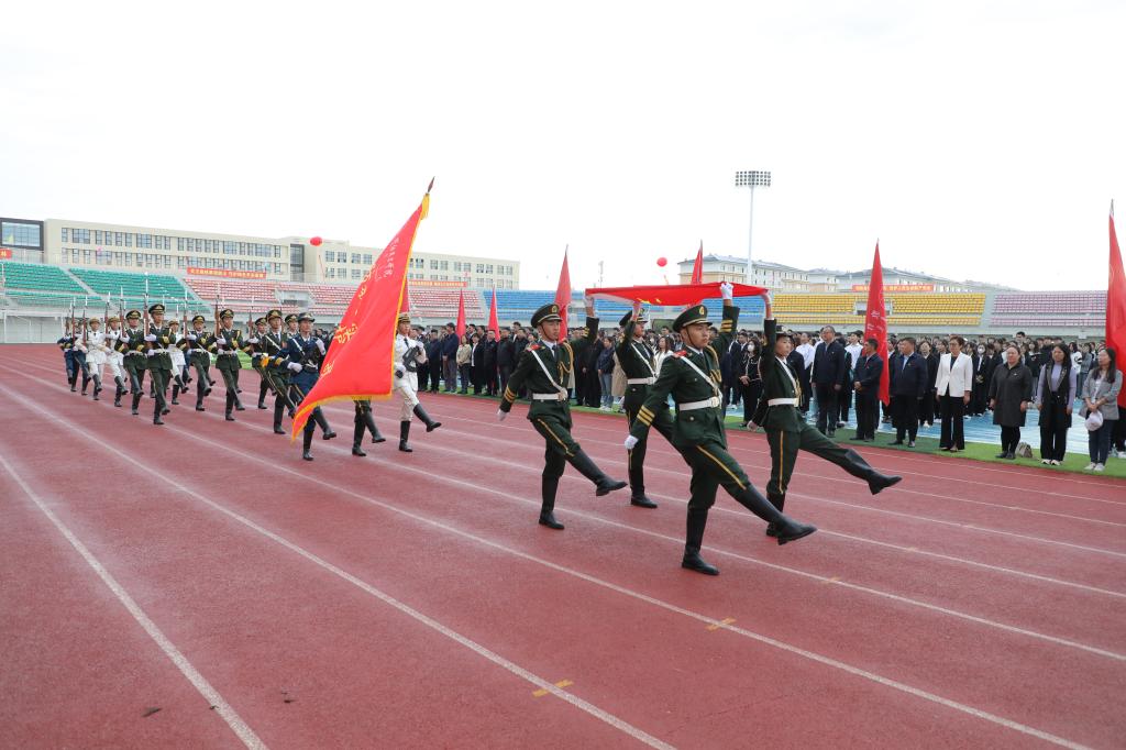 8月28日,我校在東山體育場舉行2023年秋季學期“開學第一課”暨升國旗儀式。校黨委副書記張宏天,校黨委委員、副校長敖特根,高樂,尹立軍及各職能部門負責人、各學院領導班子、團總支書記、學生代表等參加了升國旗儀式。6點40分,國旗護衛隊邁著鏗鏘有力的步伐護送國旗走向升旗臺。在莊嚴的國歌聲中,鮮艷的五星紅旗冉冉升起,全體師生注目肅立,禮敬國旗。外國語學院2020級學生包鑫宇作國旗下演講,號召全體學生堅定跟黨走、...
