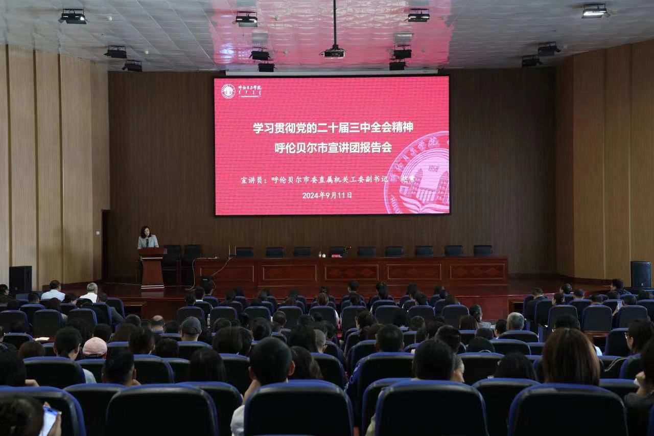 為全面深入學習領會黨的二十屆三中全會精神,扎實推進學習宣傳貫徹工作,9月11日,我校在圖書館四樓報告廳舉辦學習貫徹黨的二十屆三中全會精神專題宣講報告會,邀請呼倫貝爾市學習貫徹黨的二十屆三中全會精神宣講團成員、市直屬機關工委副書記趙素作專題宣講報告。在報告會上,趙素從深刻認識黨的二十屆三中全會的重大意義、深入學習領會習近平總書記在全會上的重要講話精神、全面準確理解和把握進一步全面深化改革的重大舉措、...