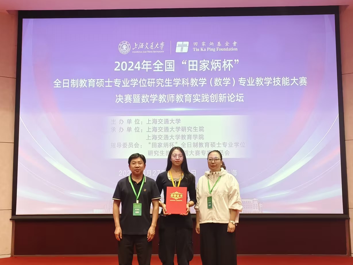 9月30日,2024年全國“田家炳杯”全日制教育碩士專業學位研究生學科教學(數學)專業教學技能大賽決賽在上海交通大學圓滿落下帷幕。我校數理學院2023級教育碩士學科教學(數學)專業研究生王鑫在決賽中不畏強手,奮勇拼搏,榮獲大賽三等獎。全國“田家炳杯”全日制教育碩士專業學位研究生學科教學(數學)專業教學技能大賽由“田家炳杯”全國教育碩士專業學位研究生教學技能大賽專家委員會指導,田家炳基金會冠名,是目前層次與...