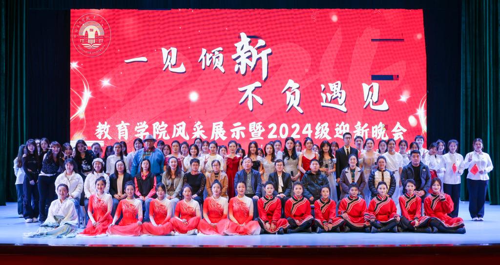 10月30日晚,教育學院“一見傾新 不負遇見”風采展示暨2024級迎新晚會在藝術樓音樂廳舉行,校黨委副書記張宏天,校團委書記王曉芳,教育學院領導班子成員、教師及2024級新生參加了晚會。在充滿回憶的視頻短片中,晚會拉開帷幕。隨著閃爍的鎂光燈和動感的音樂交織,晚會在器樂隊帶來的歌曲串燒中正式開場,舞蹈《不忘初心》瞬間點燃全場氣氛。舞蹈、歌曲串燒、詩朗誦、小合唱等節目精彩紛呈。最后,晚會在所有演出人員合唱的《一...