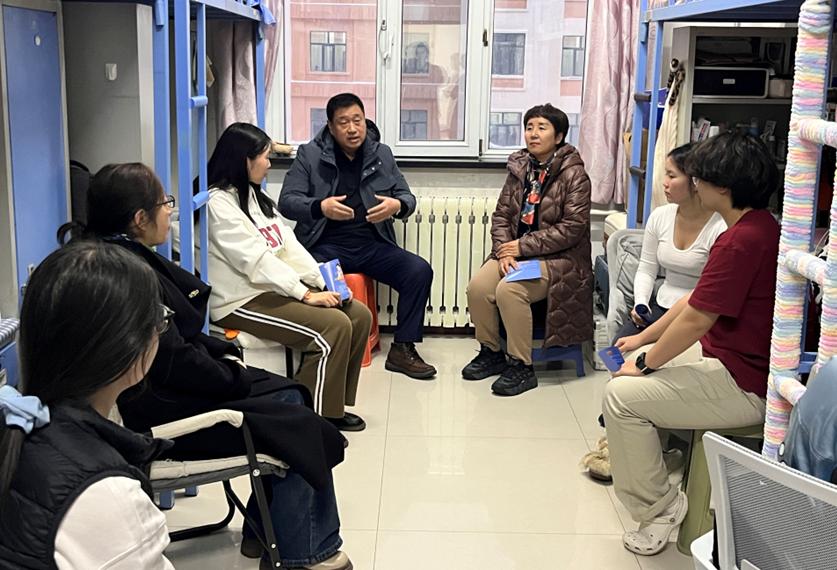 為進一步落實立德樹人根本任務,搭建學校領導與班級同學面對面交流平臺,深入了解學生所思所想,解決學生實際問題,11月26日下午,校黨委委員、紀委書記、監察專員岳勇走進外國語學院2023級英語一班宿舍,與學生們進行了親切交流。外國語學院黨總支書記王國華、副書記姜麗杰及相關教師陪同走訪。岳勇認真察看了學生宿舍的衛生狀況、安全設施以及公共設施和生活環境。隨后,輔導員孟鑫向岳勇書記簡單匯報了班級基本情況,包括班...