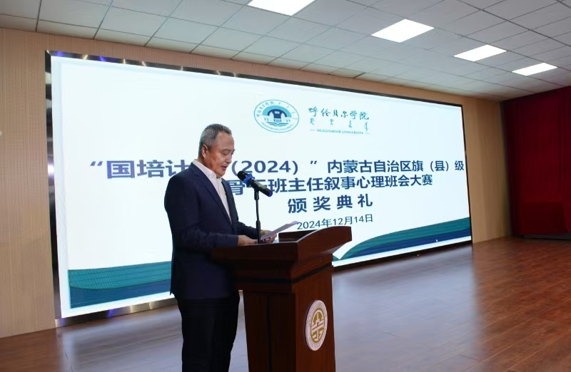 12月14日上午,呼倫貝爾學院“國培計劃(2024)”內蒙古自治區旗縣級小學骨干班主任敘事心理班會大賽頒獎典禮在貝爾小學舉行。我校黨委委員、副校長李躍武,南京心理學會秘書長趙兆,南京市秦淮區教師發展中心正校級調研員羅京寧,深圳市宇澤公益基金會理事長吳虹,海拉爾區教育研修中心副主任畢秀芝,我校繼續教育學院院長莎茹莉、教育學院院長李偉艷參加了典禮并頒獎。專家評委團隊、參賽學員們以及來自海拉爾區的骨干班主任...