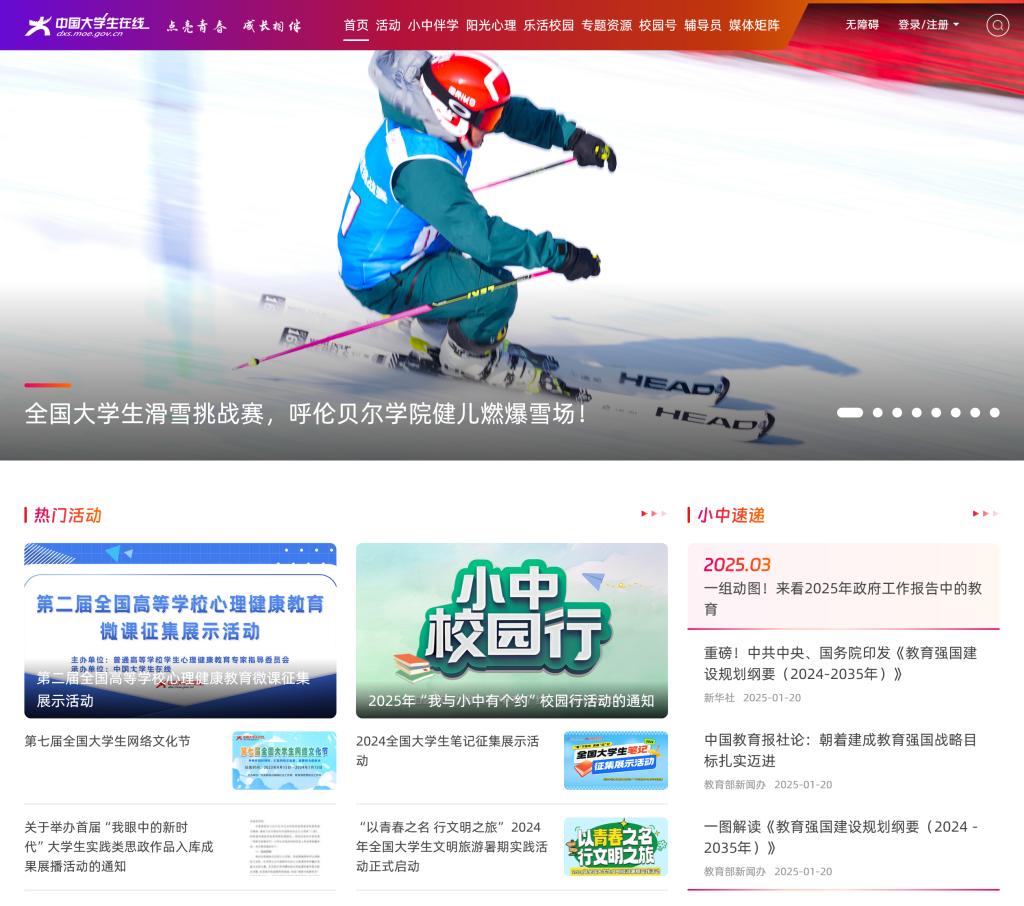 今日,《全國大學生滑雪挑戰賽,呼倫貝爾學院健兒燃爆雪場!》登教育部中國大學生在線網站首頁首圖!文章《全國大學生滑雪挑戰賽,呼倫貝爾學院健兒燃爆雪場!》一經發布就受到媒體的廣泛關注。“中國大學生在線”是由教育部主辦,高等教育出版社承辦,是國內最大的面向全國大學生開展思政工作的主題教育網站,在全國高校中具有極高的影響力和權威性。中國大學生在線的關注和報道,進一步助推我校社會知名度、美譽度和社會影響...