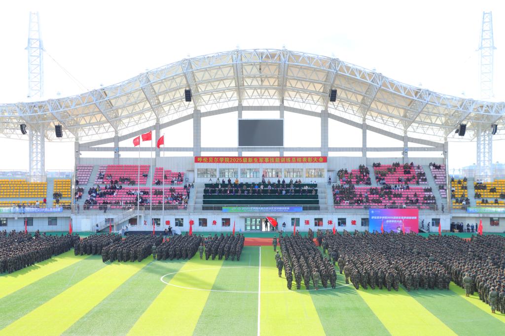 9月15日下午,我校在東山體育場舉行2025級新生軍事技能訓練總結表彰大會。校黨委副書記張宏天、呼倫貝爾軍分區戰備建設處副處長白鋼、武警呼倫貝爾支隊副支隊長蔡永剛、海拉爾區人民武裝部部長丁玉龍、各二級學院黨委書記、黨委副書記、團學辦主任、2025級新生輔導員參加大會,大會由學生工作處(黨委學生工作部、武裝部)處(部)長郝新君主持。莊嚴的升國旗儀式,歌聲嘹亮,呼倫貝爾學院國防教育實踐團、國旗護衛隊出旗,身姿挺...